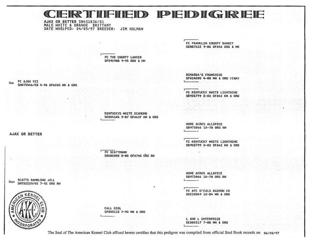 SIRE: DC Ajax or Better (Little Jax), OFA Good (see below)