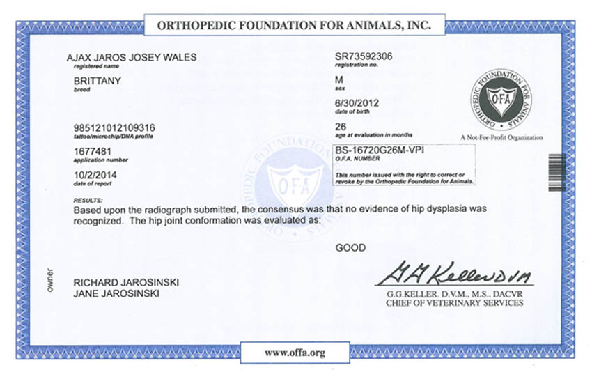 SIRE: DC Ajax or Better (Little Jax), OFA Good (see below)
