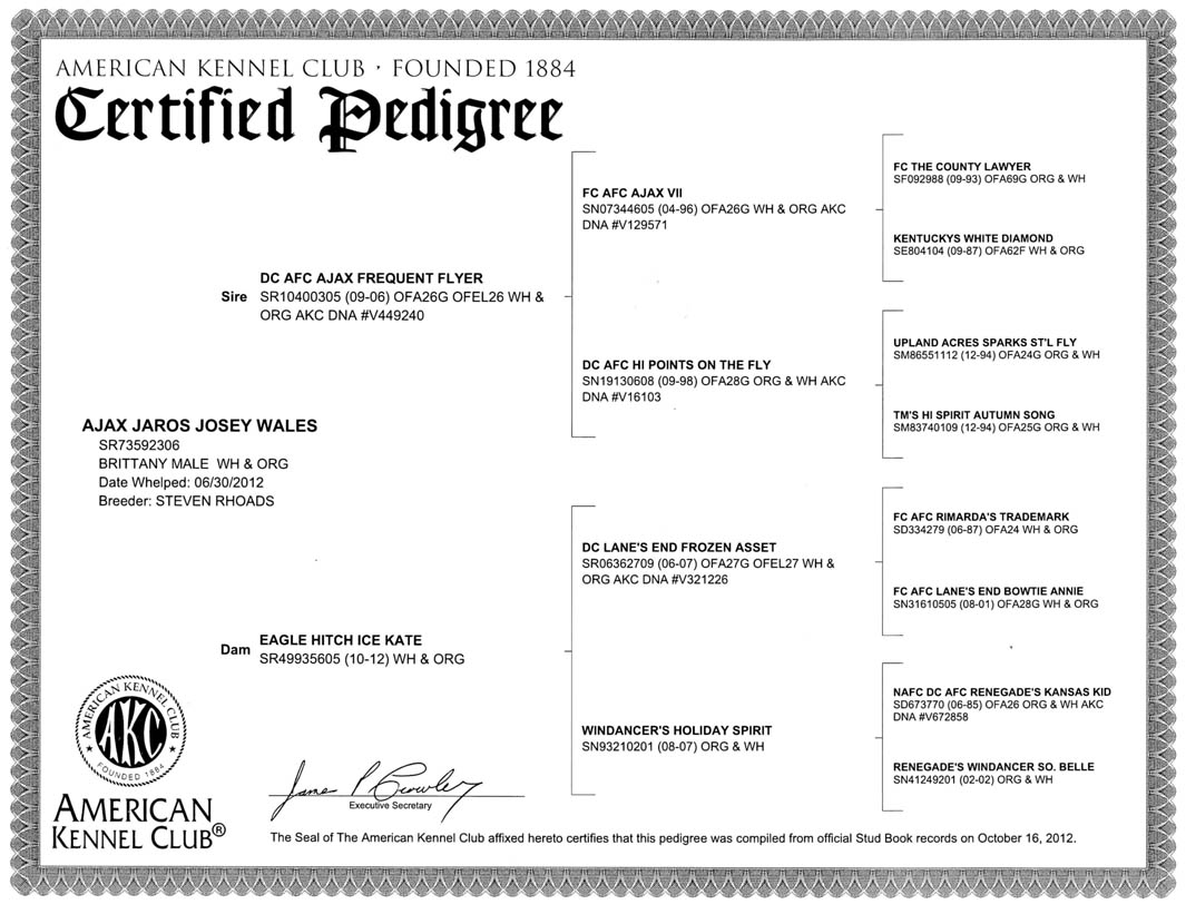 SIRE: Ajax Jaros Josey Wales, SH, NAVHDA Natural Ability - perfect score 112. OFA Good (see below)