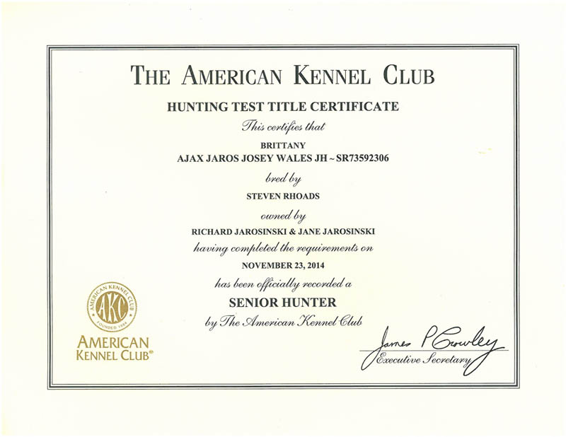 Click here for JOSEY'S AKC MASTER HUNTER CERTIFICATE