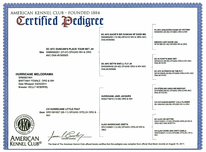 Ch. Hurricane Little Feat (Tiny) Brittany breeding